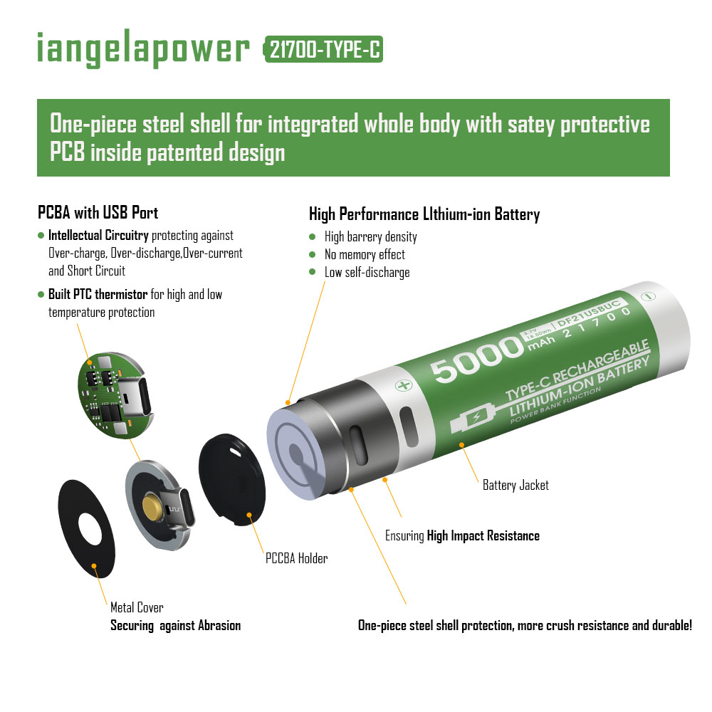5000mAh 21700锂电池 TYPE C充放一体 可给手机充电