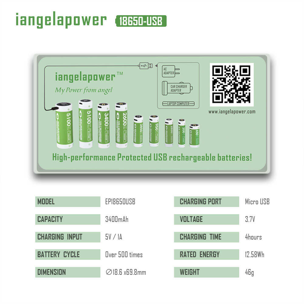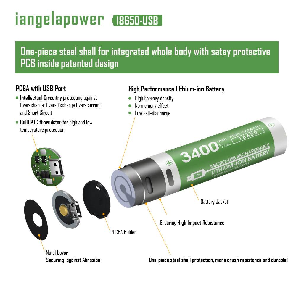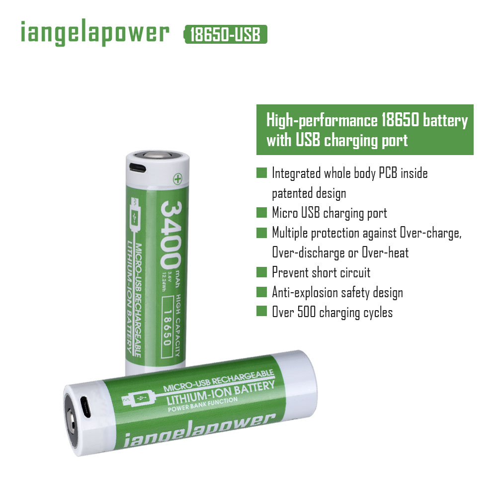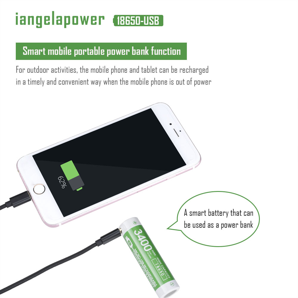 3400mAh 18650锂电池带保护板 USB 单充
