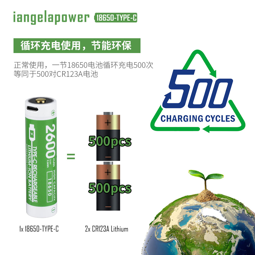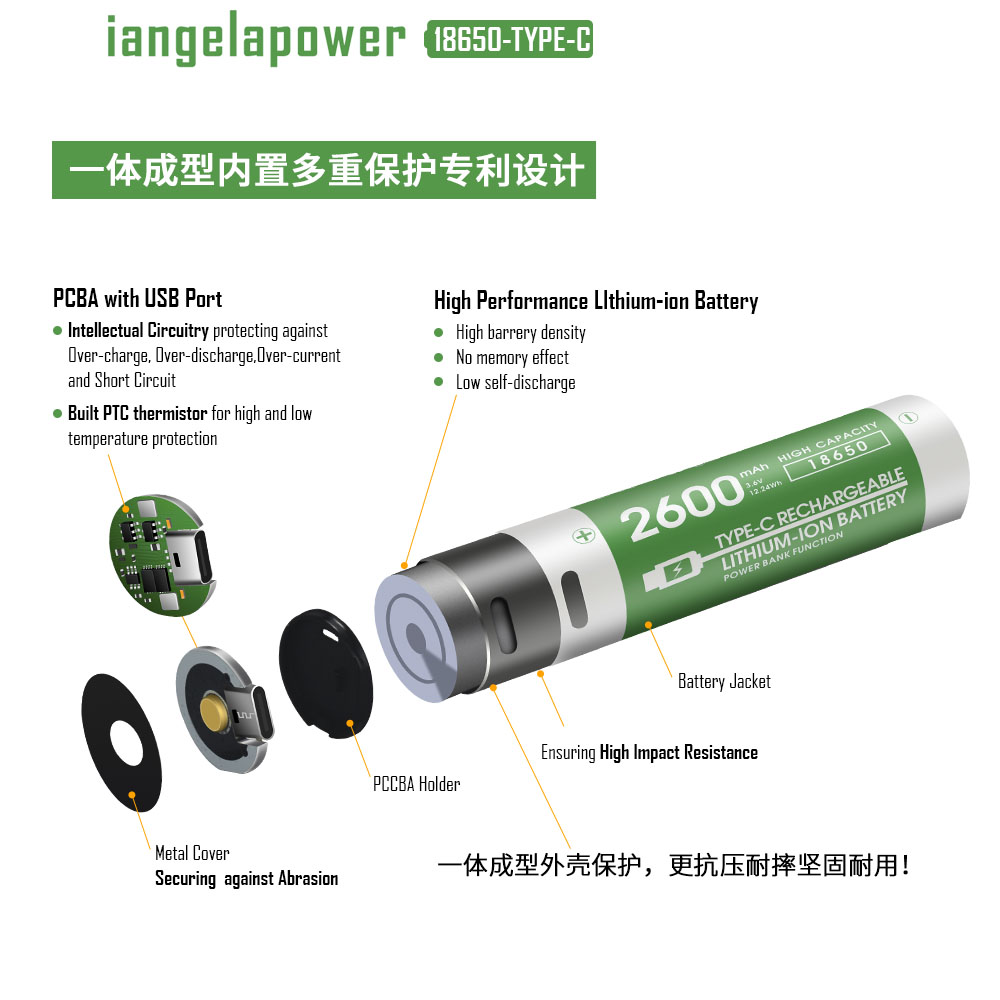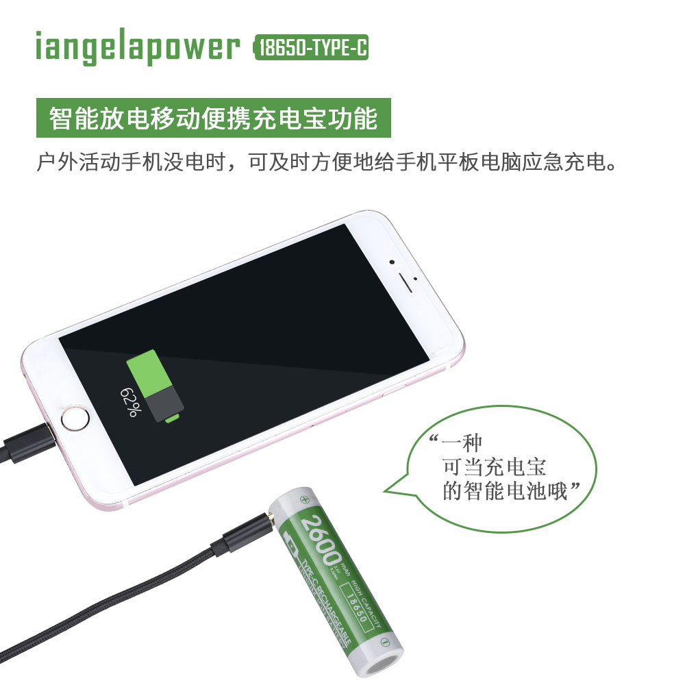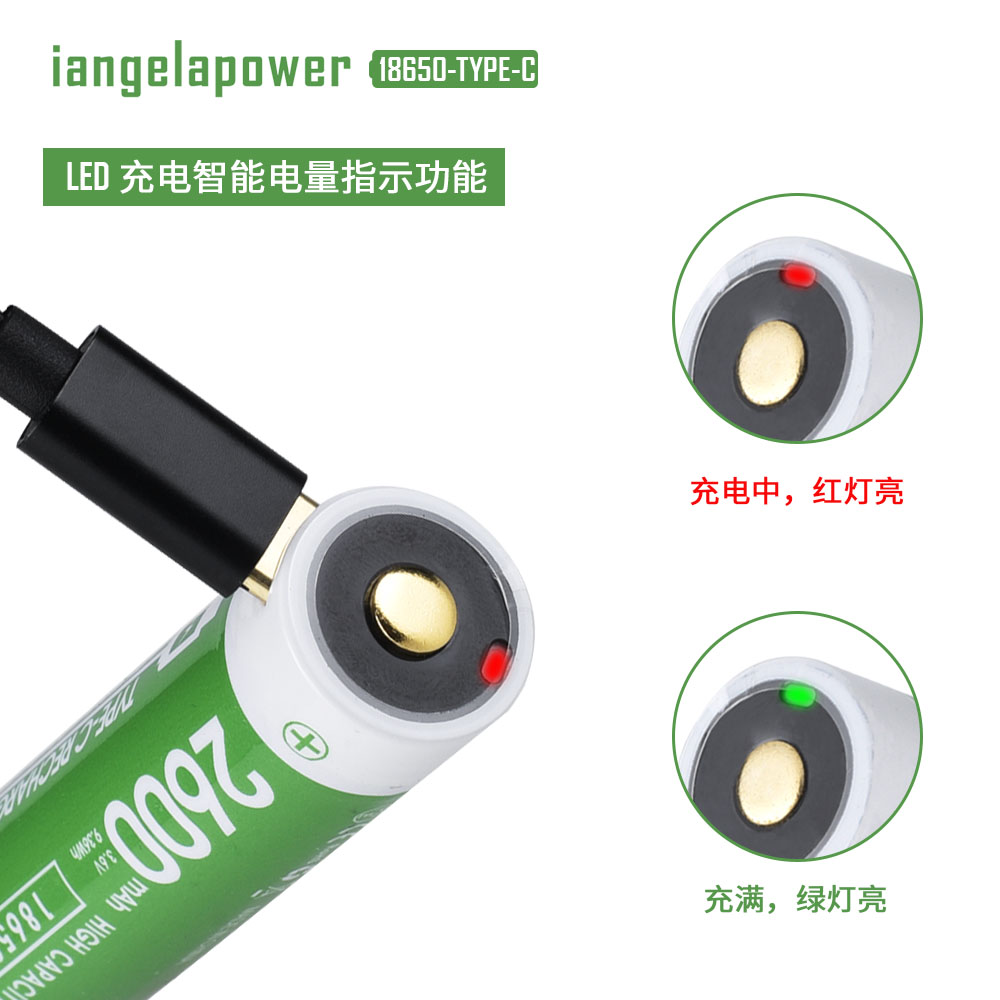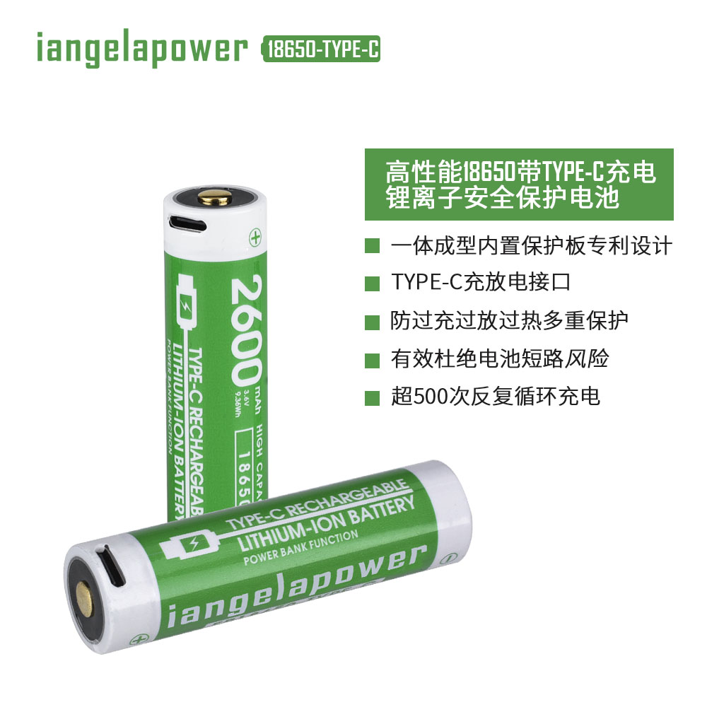 2600mAh 18650锂电池带保护板 TYPE C可充电锂电 电筒强光手电头灯电池