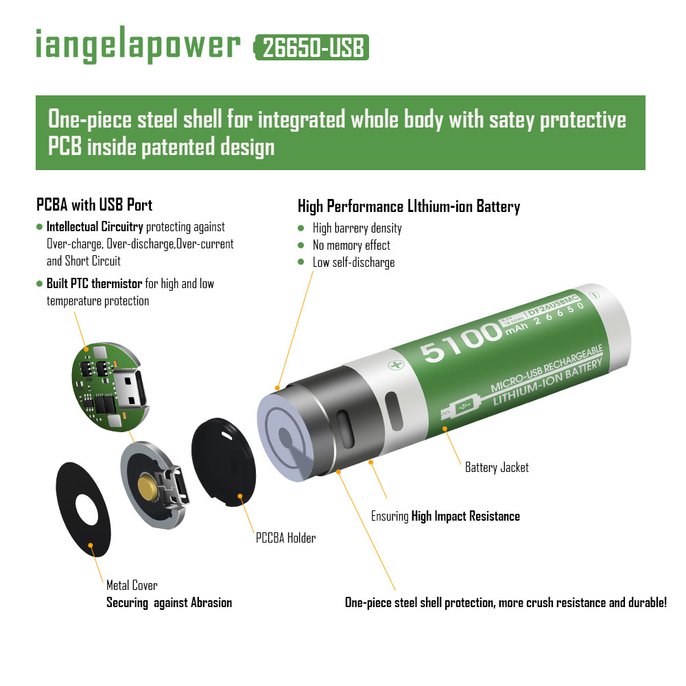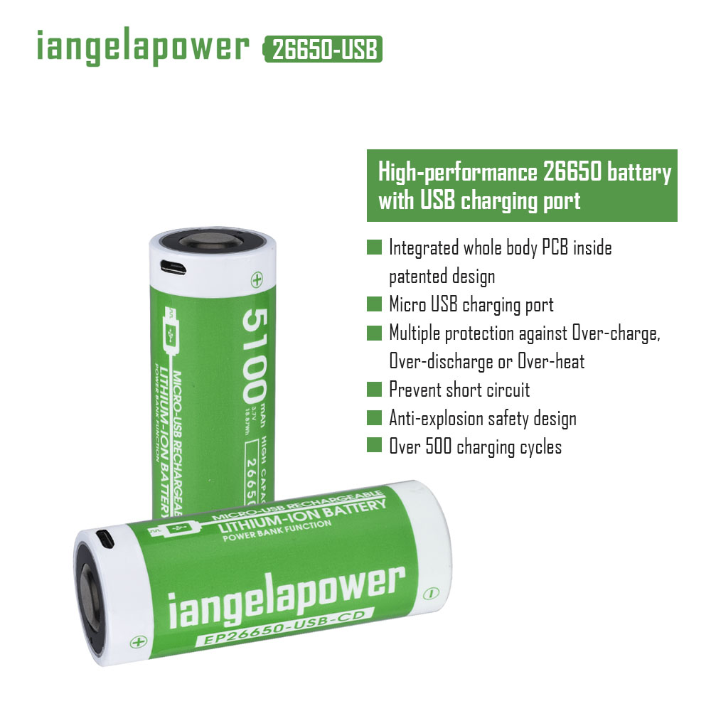5000mAh 26650锂电池带保护板 USB可充电锂电池 电筒强光手电头灯电池